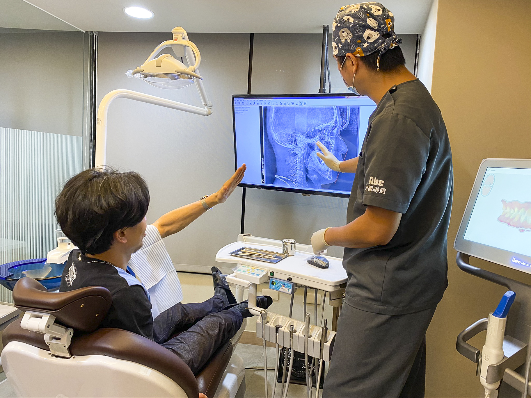 王醫師年紀約莫40歲上下,算是隱形矯正界久經歷練的中堅世代,是隱適美技術認證的白金級醫師,看診時喜歡綁著頭巾。除了個性親切,有南部人的純樸特質外,專業能力也不在話下。他清楚告訴我療程的約略區間、未來需不需上骨釘或做任何特殊處理、結束後的維持方式,還特別分析了我的X光正視、側視圖,指出我除了牙縫之外,門牙也有些許外翻,可藉由矯正拉回至適當位置,修飾側臉下半輪廓,以符合鼻、唇、下巴3點的「美觀線」。