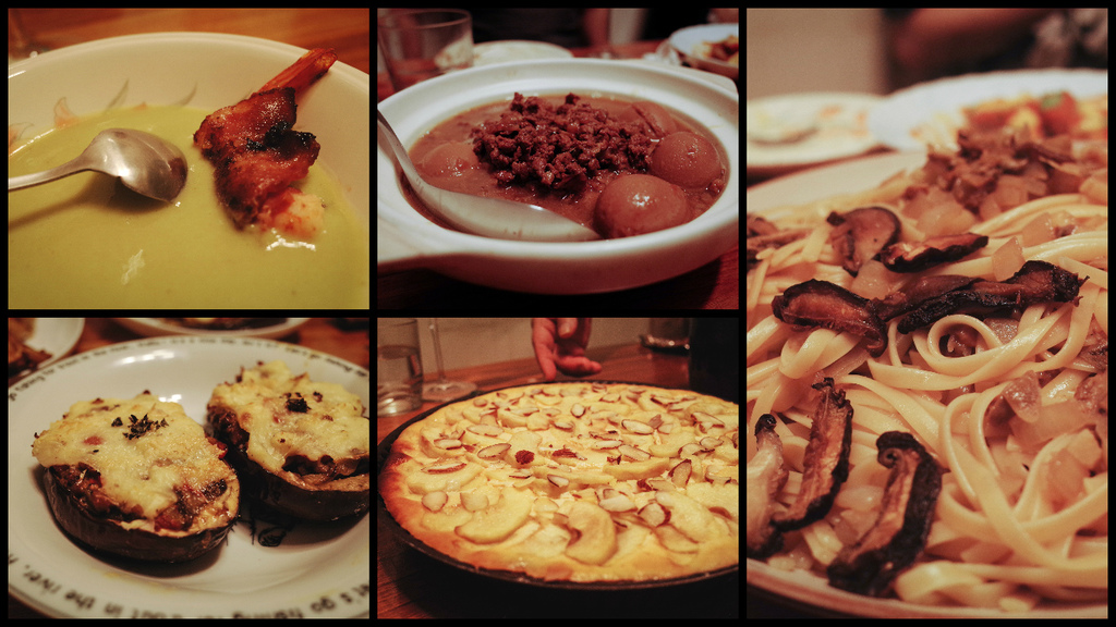 那個周末的夜裡,有幸獲邀參加逯爸的家宴,著實開了眼界,原來逯爸不只懂酒,更是一位美食家。他與逯媽兩雙巧手作出滿滿一桌西班牙佳餚,搭配義式主菜,以西餐形式上餐:加利西亞鮪魚餡餅、西班牙焗烤圓茄鑲肉、豌豆冷湯佐培根鮮蝦、牛肝菌菇義大利麵……其內容之豐盛,必須時刻提醒自己節制手中的刀叉,方能嘗到全部菜餚。吃下肚的,不只是華麗的菜名,更吃到食材的紮實與家的溫度。