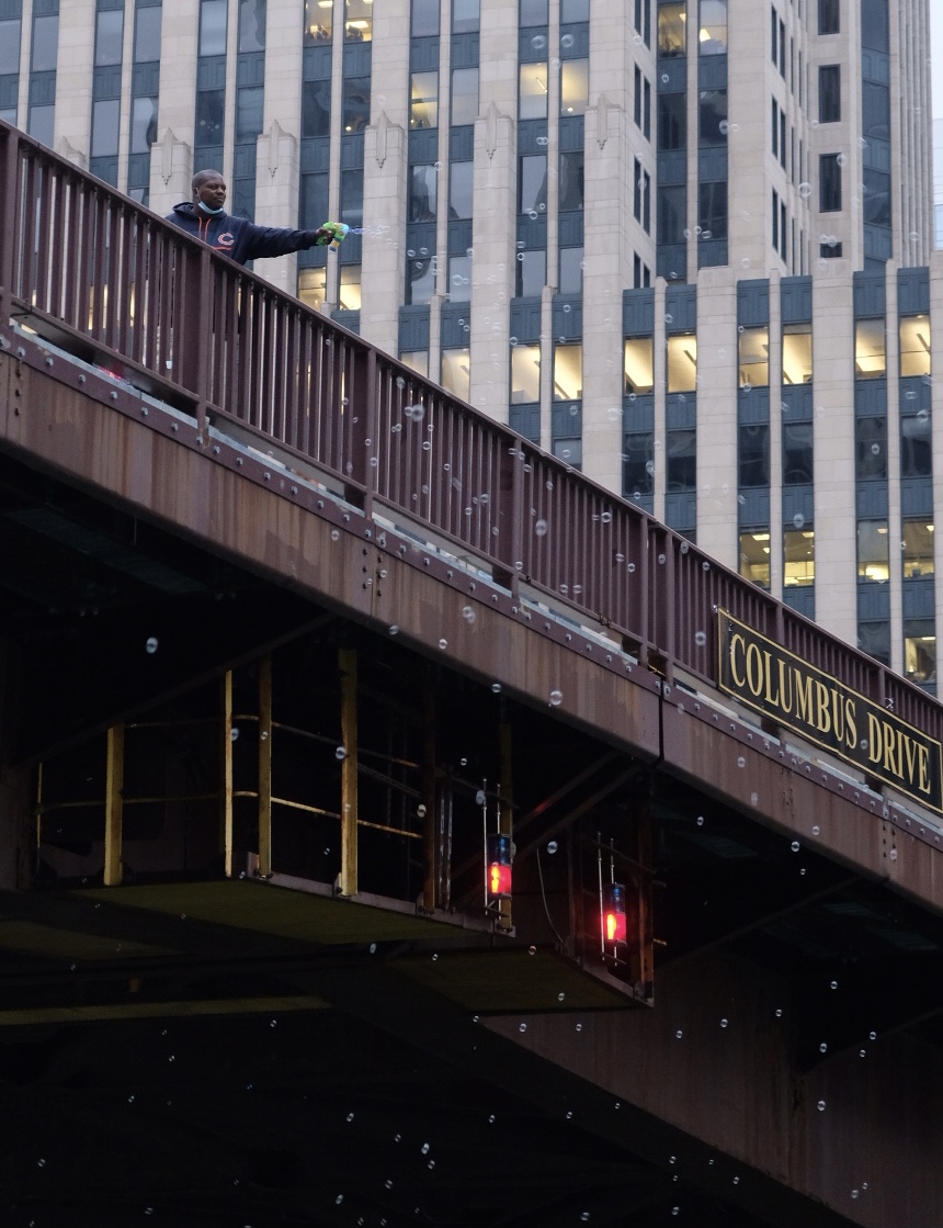 相隔3天,再次經過家附近的橋,赫然發現那位在橋上對著船隻吹泡泡的黑人大叔已經截然不同。