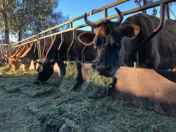 「這種褐色品種的澤西牛,產的牛奶比常見黑白乳牛產的更容易被人體消化喔。」彼得說。